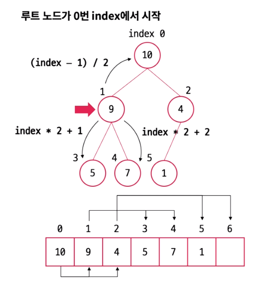 | 오른쪽 자식 노드 | index * 2 + 2 |